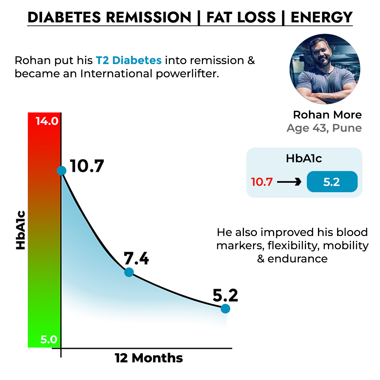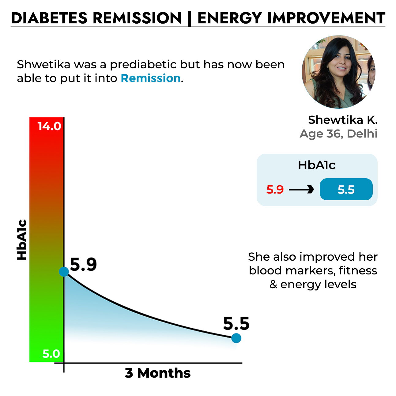 3 Months: Achieve significant improvements in HbA1c levels, weight management, blood sugar Level, and overall well-being, bringing you closer to effectively managing diabetes