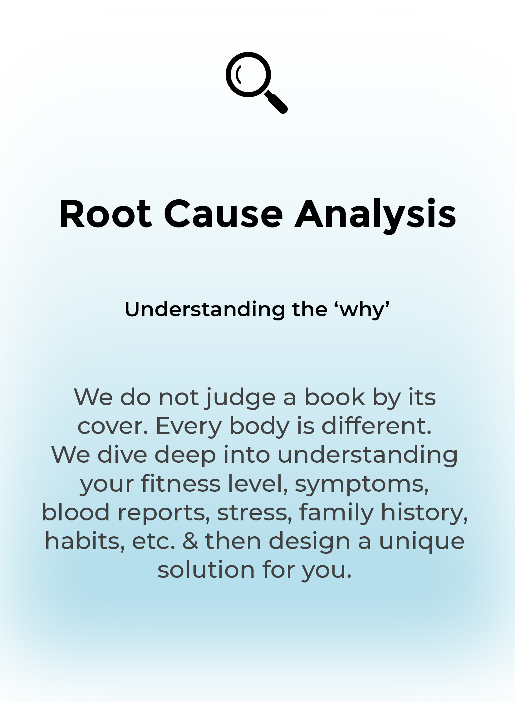2.Root Cause Analysis: We analyse your blood reports, create a note for your doctor, & design your nutrition & exercise plan accordingly.